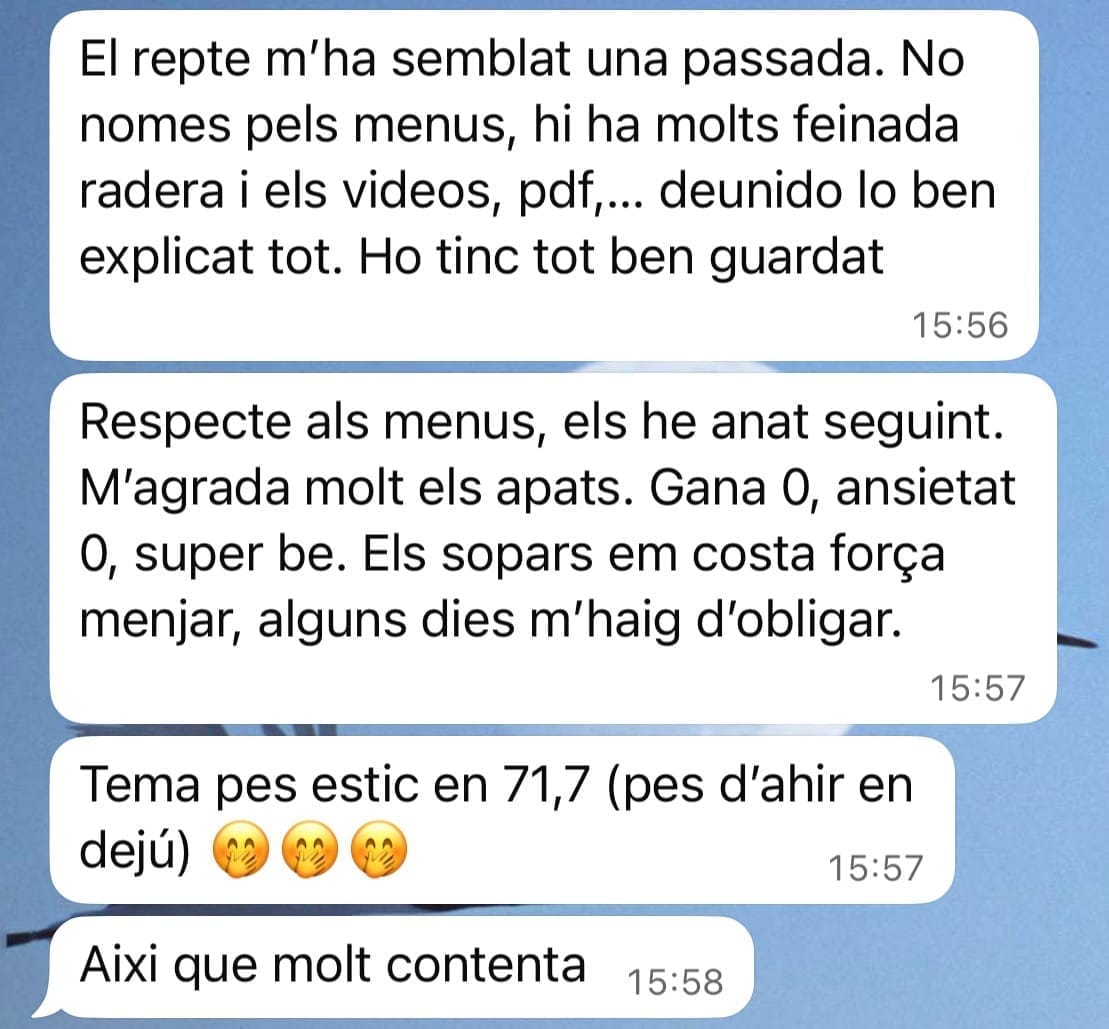 Tendrás un grupo de motivación con Judit donde compartiremos nuestras comidas y hábitos.