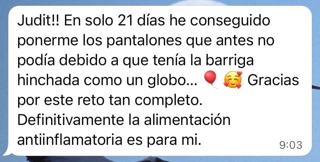 Recibirás en tu WhatsApp cada mañana un vídeo educativo y consejos sobre como llevar a cabo una Alimentación Antiinflamatoria (con plantillas de alimentos y todo el material 100% práctico que necesitarás).